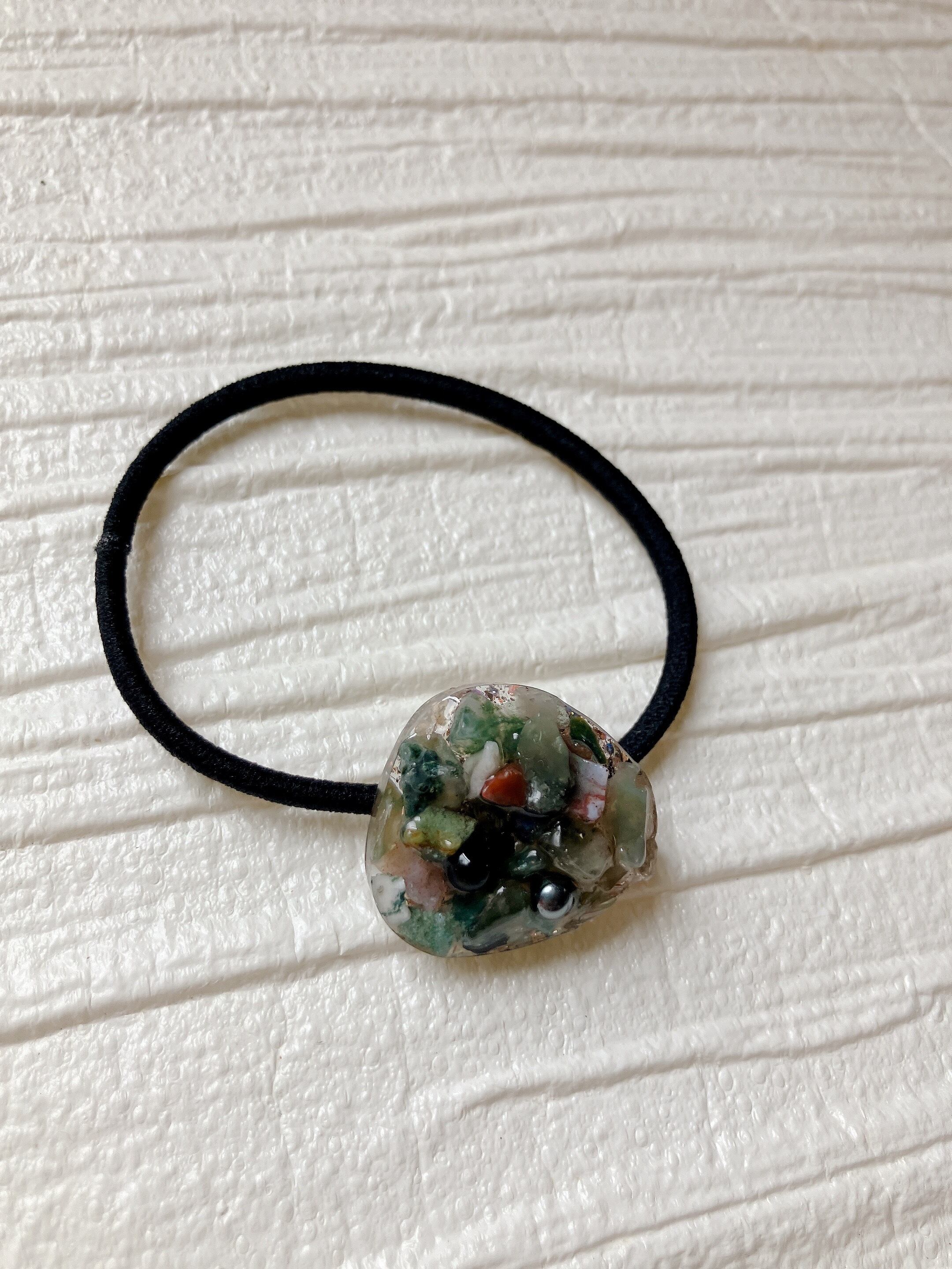 細石やシェルを入れたレジンで作ったニュアンス可愛いヘアゴム
